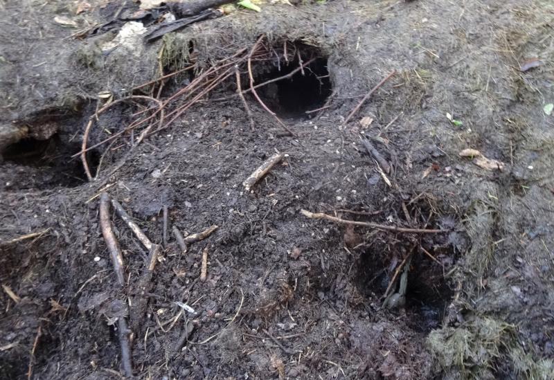 Ergänzung, da der Größenvergleich fehlt: Die Löcher/ Gänge haben einen Durchmesser von gut 10-12cm.