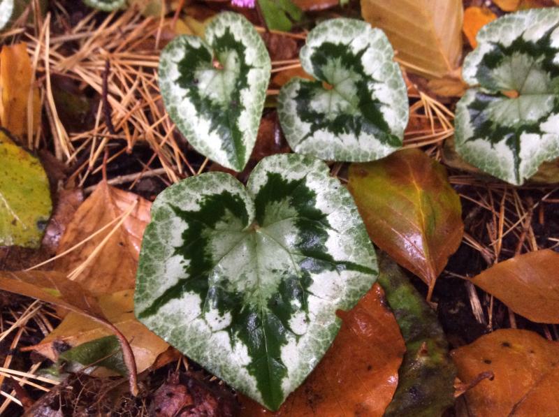 Werden wir denn irgendwann auch Blüten zu diesen Blättern sehen? Die Schwierigkeit liegt wohl häufig darin, dass die einen ( besonders hederifolium) erst blühen und dann erst Blätter bekommen, andere (wie coum) erst Blätter und viel später Blüten, so dass man oft nicht beides zusammen fotografieren kann.