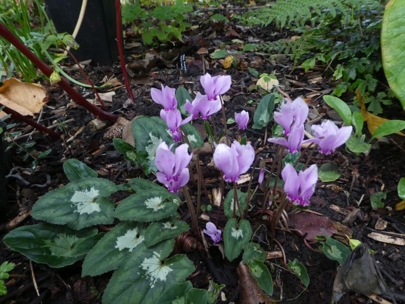 Werden wir denn irgendwann auch Blüten zu diesen Blättern sehen? Die Schwierigkeit liegt wohl häufig darin, dass die einen ( besonders hederifolium) erst blühen und dann erst Blätter bekommen, andere (wie coum) erst Blätter und viel später Blüten, so dass man oft nicht beides zusammen fotografieren kann.