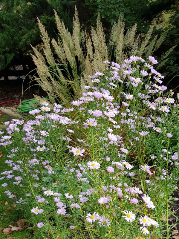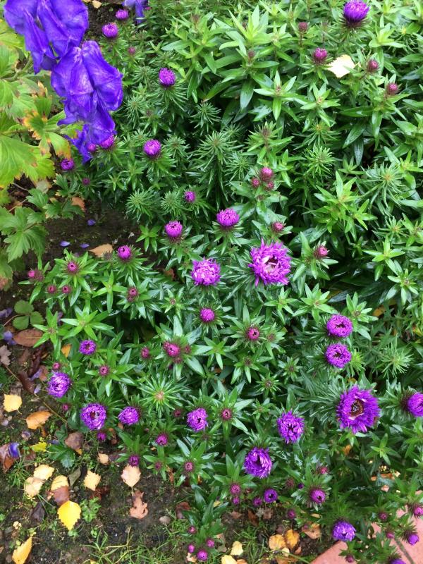 Aster ageratoides 'Ezo Murasaki', mein besonderer Liebling. Blüht sehr lange, kommt mit Trockenheit klar.
