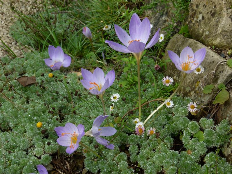 Crocus speciosus lugt aus der Cotula hispida