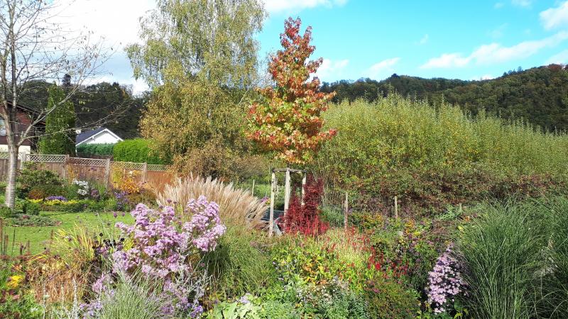 Hier auch seit gestern "Dauerregen". 1,5 mm in 24 Stunden. Leider für viele Pflanzen zu trocken, die Herbstfärbung fällt entweder aus oder die Blätter sind schon abgefallen.