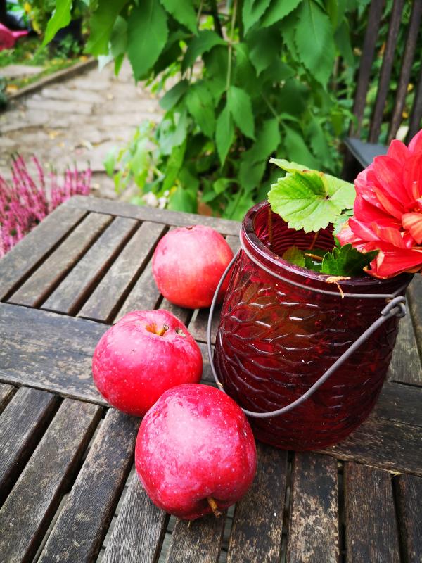 Hier ein paar Berner Rosenäpfel - es war eine tolle Ernte, aber die 3 bleiben als Deko...