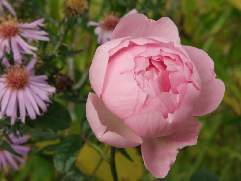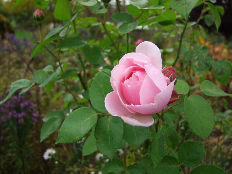 'Mary Washington' Noisettehybide aus den USA.Sie ist hier seit Jahren gleich geblieben und kommt nie über1,20m hinaus.