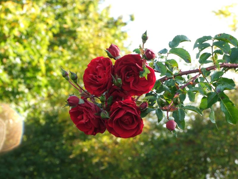 'Summer Memories' sehr breit-und raumgreifende Strauchrose. Blüht fast ständig ,duftet ,hat aber eklige Stacheln. Wenn ab Herbst der Sternrußtau sich breit macht, fällt es auf den großen Blättern ziemlich auf.