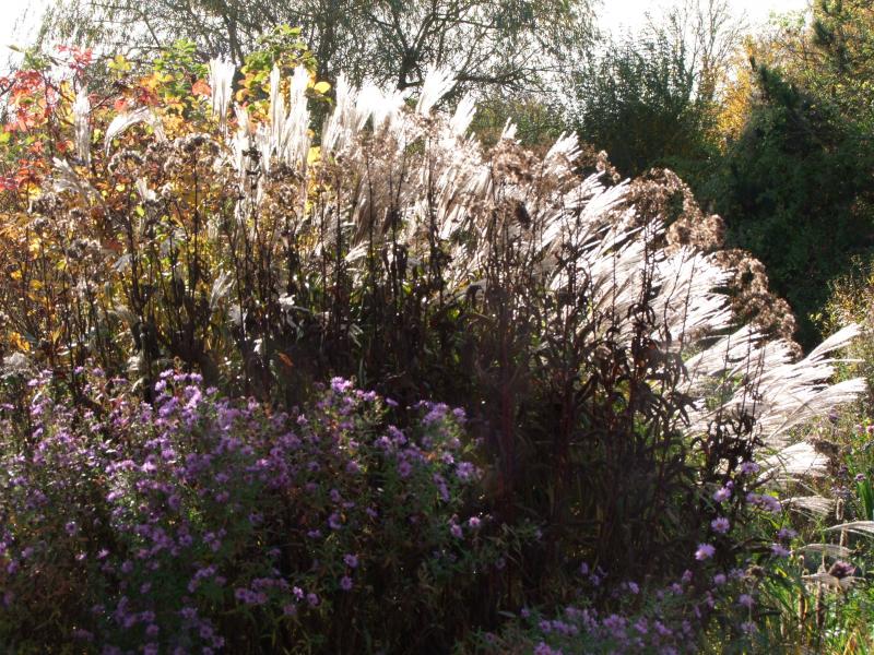 Silberner Miscanthus im Gegenlicht.Der Tag war noch überwiegend sonnig.
