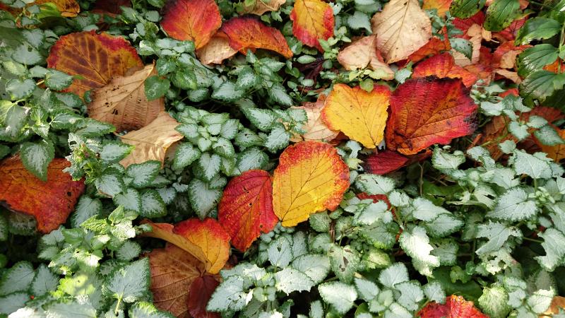 Styrax japonica -zwar nicht sehr auffällig, aber doch eine Ergänzung, die herbstlich stimmt.