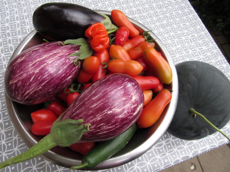 Hier gab es einen Korb Allerlei fürs Abendessen. Ein großes Dankeschön an Wühlmaus für die Samen der Sardischen Riesenpaprika - die sind wirklich gigantisch! :o