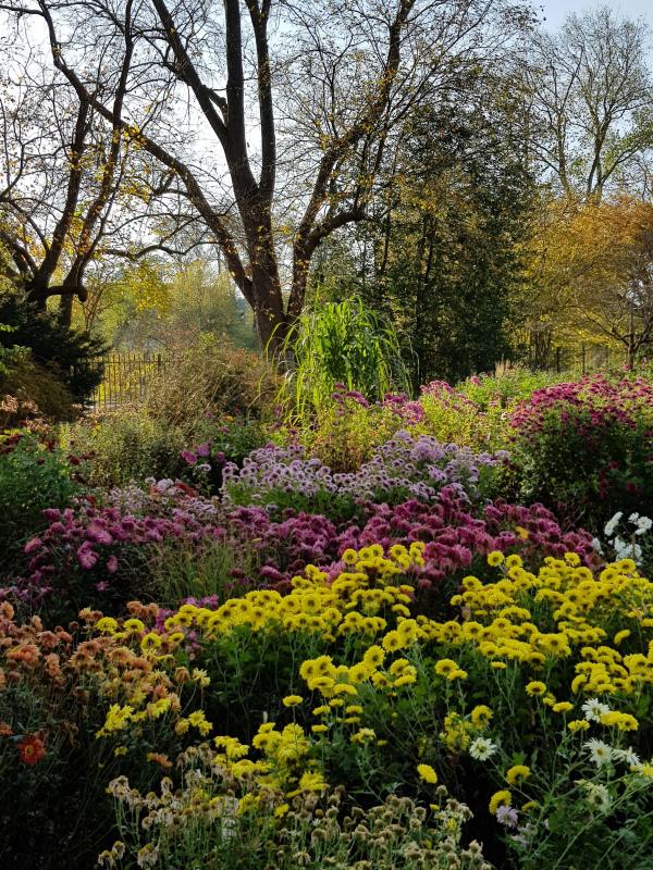 Wenn die Insel morgen noch offen ist, gehe ich zu 9:30 bis 10:00 rüber. Ich werde an den Chrysanthemen-Beeten sein, um Bilder zu machen. Ob das bei tropfenschwer hängenden Blütenköpfen Spaß macht, werde ich ja sehen. ;) Ich gehe dann sicher noch zum nördlichen der beiden Torhäuser, wo auch noch einmal große Flecken mit Winterastern stehen.