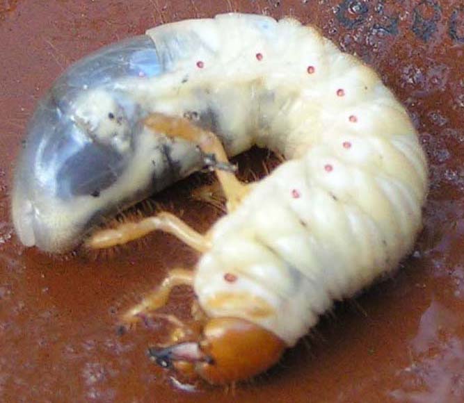 ) findenWenn es sich um Engerlinge des Gartenlaubkäfers handeln sollte, könntest du HM-Nematoden einsetzen (würde gleichzeitig auch gegen ev. vorhandene DMR-Larven helfen). Allerdings würde das ein sehr teures Unterfangen werden...Und hier noch Interessantes von der Uni-Innsbruck über die Bekämpfung von Maikäfern und Gartenlaubkäfer (sind eher Tipps für Landwirte).Liebe Grüße, BarbaraP.S.: als ich meinem ersten Junikäfer-Engerling sah (an den Wurzeln einer Duftblattpelargonie), dachte ich es wäre eine mutierte Riesen-Dickmaulrüsselkäferlarve... (kleiner hysterischer Schreikrampf