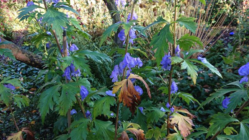 Dafür ist dieser Herbst aber besonders lange schön. Anfang November und immer noch Wachstum: Nur selten treibt der Herbsteisenhut so üppige Seitentriebe und blüht dadurch fortdauernd.