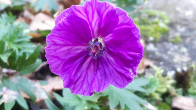 Unermüdlicher Dauerblüher, und dabei nur in eine Fuge gezwängt: Campanula poscharskyana.