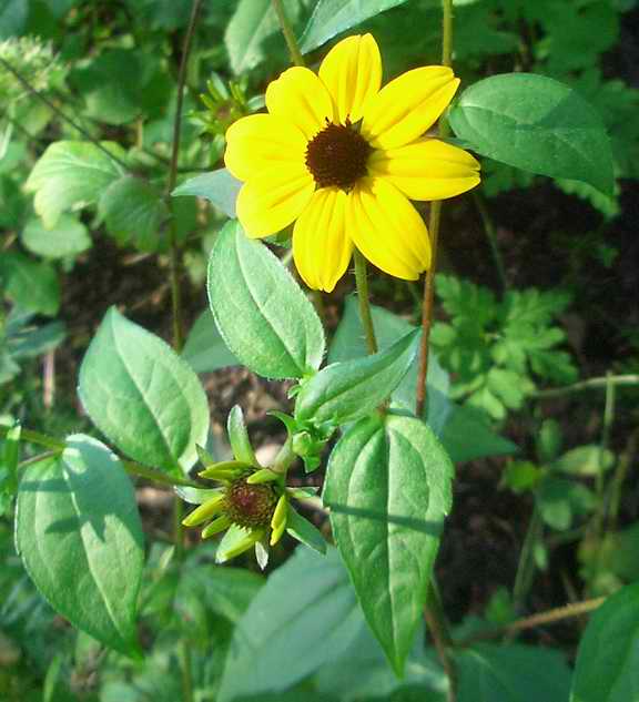 Hat sich von allein eingefunden. Sieht bisschen aus wie Rudbeckia aber so eine wächst nirgends in der Nähe. Hier habe ich eine R. ?nitida?, die hat aber ander Blätter.