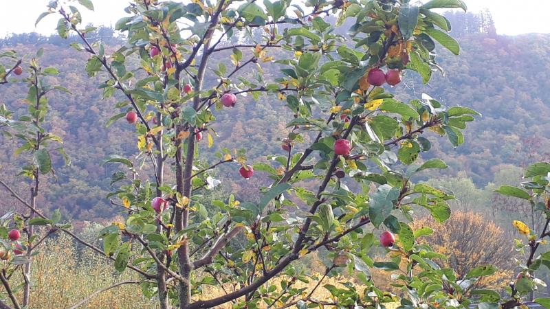 Die Herbstfärbung heuer in meiner Region war spät, ausgelöst durch Kälte. Leider hat meine Fothergilla nicht so recht mitgemacht, daher ein Bild von 2019, im Wienerwaldraum nach einem sehr heißen und trockenen Sommer.