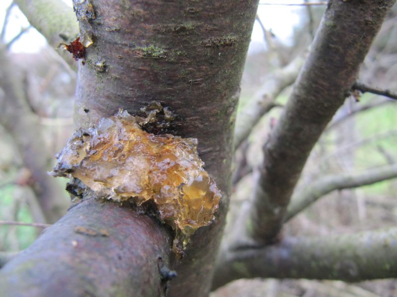 An einem noch relativ jungen Pflaumenbaum habe ich heute ganz massiven Gummifluss festgestellt, und zwar sowohl am Stamm als auch dort, wo die Äste und Zweige abgehen. Sehr beunruhigt mich auch, dass an der Veredelungsstelle meines neu gekauften Pfirsichbäumchen ebenfalls Gummifluss zeigt. Was tun?
