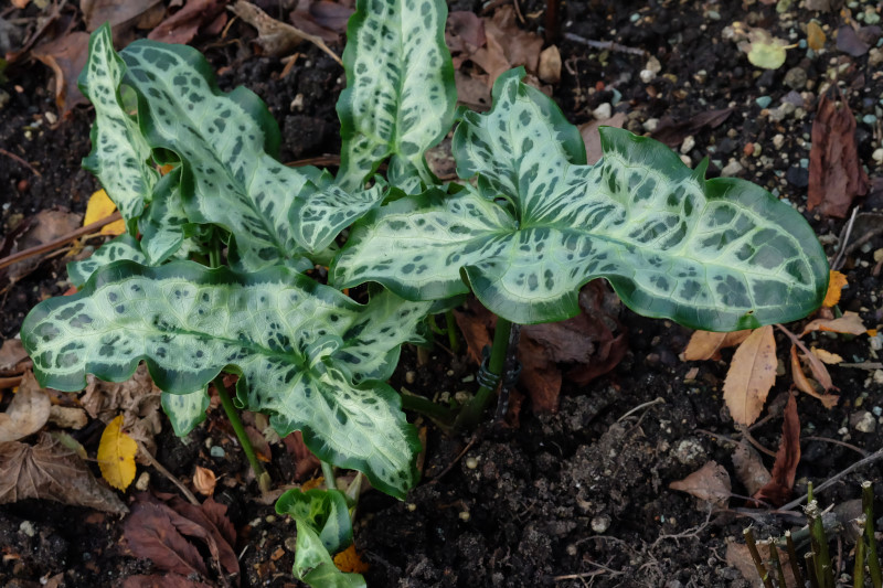 Arum concinnatum 'Aghia Vavara' legt hier ganz gut zu.