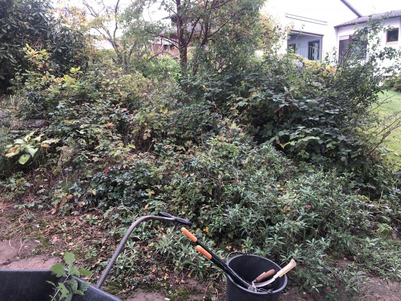 Ich habe Ende Oktober angefangen eine verdschungelte Ecke zu roden. Fast jeden Tag 1-2 Stunden.