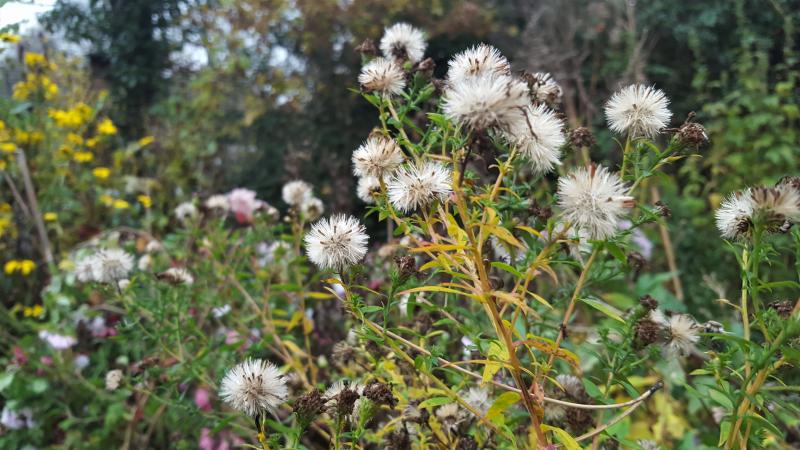 ... und ein eher farbarmer Eindruck -- Astern, als Pusteblumen.