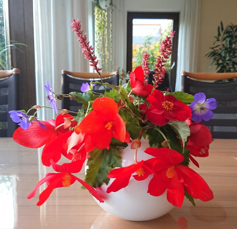 Die Knollen der Begonien sind vor dem Frost im Keller eingelagert. Das gibt noch ein paar schöne Abschlussblüten, die recht gut halten.