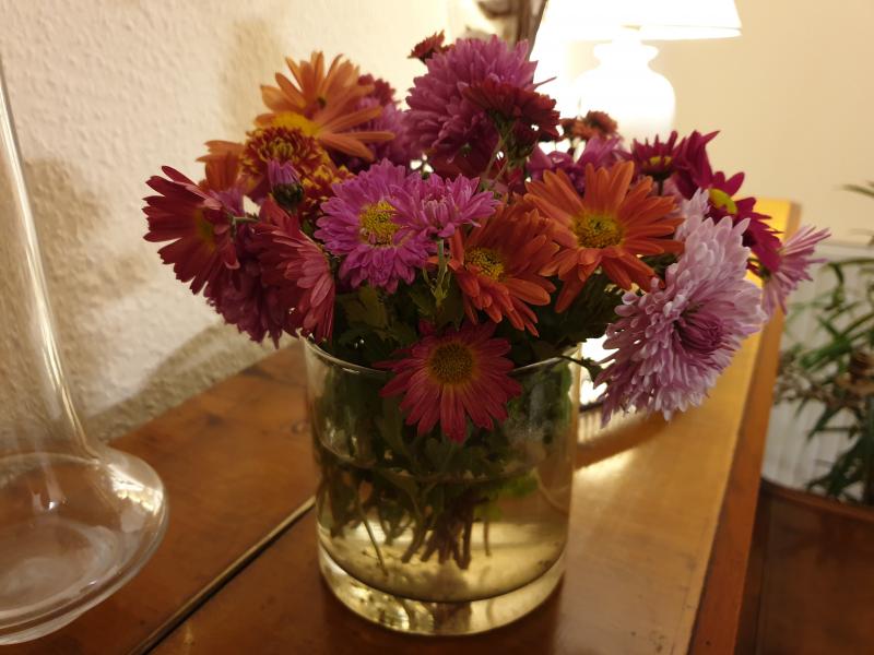 Bevor es kälter wird, wir hatten heute Raureif, noch einen Strauß zum Drinnen genießen reingeholt.