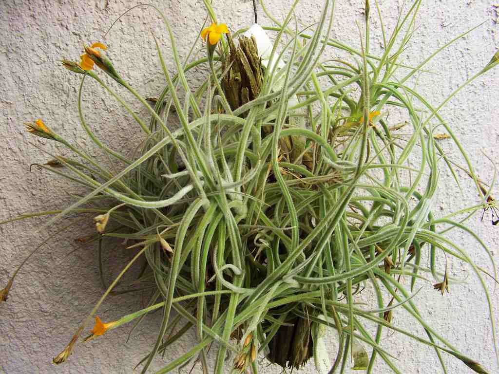 Und noch einmal ein scharfer Kontrast: die Blüten der Tillandsia-Arten haben ja tatsächlich das gesamte Spektrum der Farben. Dieses Bild zeigt die gelben Blüten der Tillandsia crocea (von dieser Art gibt's auch eine orange-farbene Varietät), ...