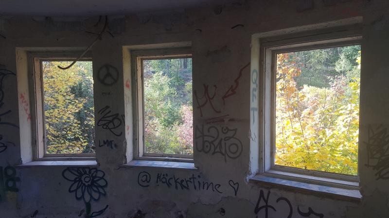 Herbstlicher Ausblick , hier mal etwas anders : aus den zugigen Fenstern des ehem. FDGB Heims Fritz Heckert im Harz, jetzt ein sogenannter