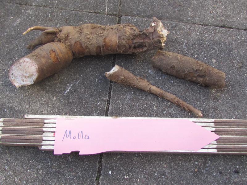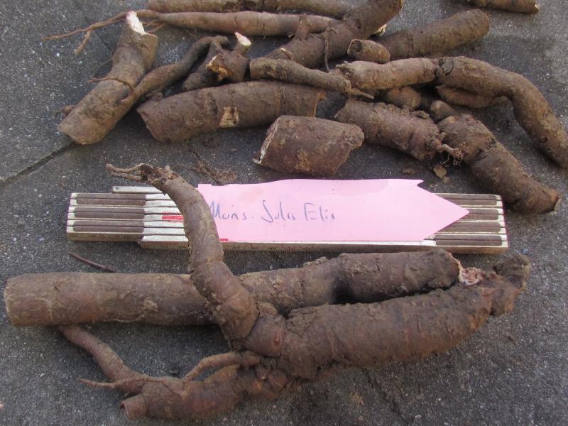 Zuerst die Wurzeln, die ich gestern von ein paar meiner Pfingstrosen für diesen Faden abgezwackt, sprich seitlich weggegraben habe: