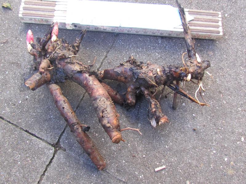 Die habe ich dann alle ausgeschnitten, um das Wurzelstockstück zum neu Wachsen anzuregen, ein kleiner Nebenversuch.