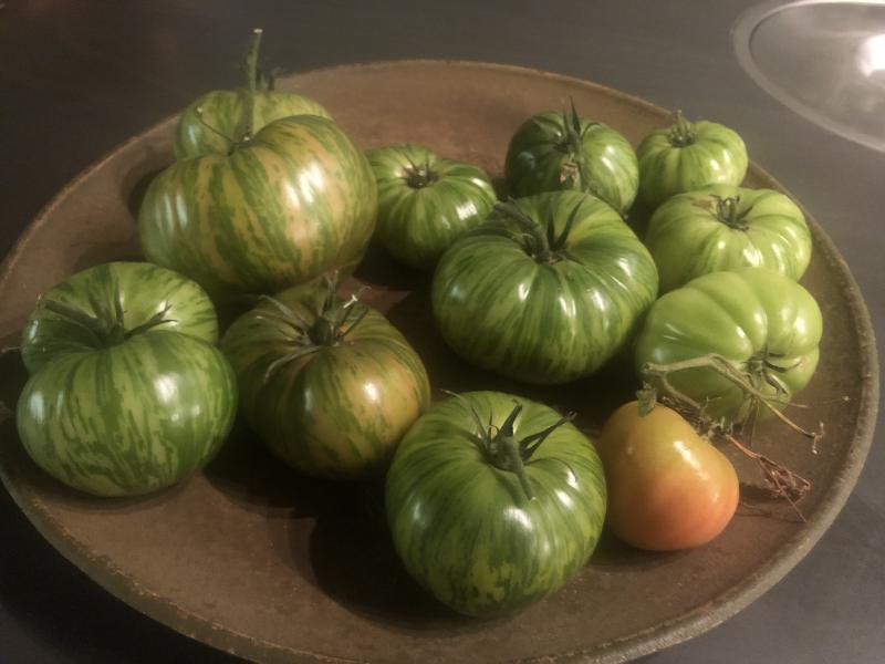 In dieser großen Schale reifen noch verkreuzte Giant Green Zebra nach. :)