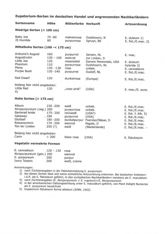 Sooo unterschiedlich sind die Sortimente hier und in den vereinigten Staaten eigentlich gar nicht. Mit E. fistulosum 'Carin' und E. maculatum (purpureum?) 'Little Red' sind jedoch hier zwei hoch bewertete Sorten nicht vertreten, die "etwas anders" sein könnten. :-\