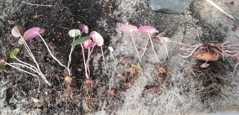 Ca 10 m von der Mutterpflanze ( c. hederifolium so me white) : ein Sämling mit schönem rosa Schimmer