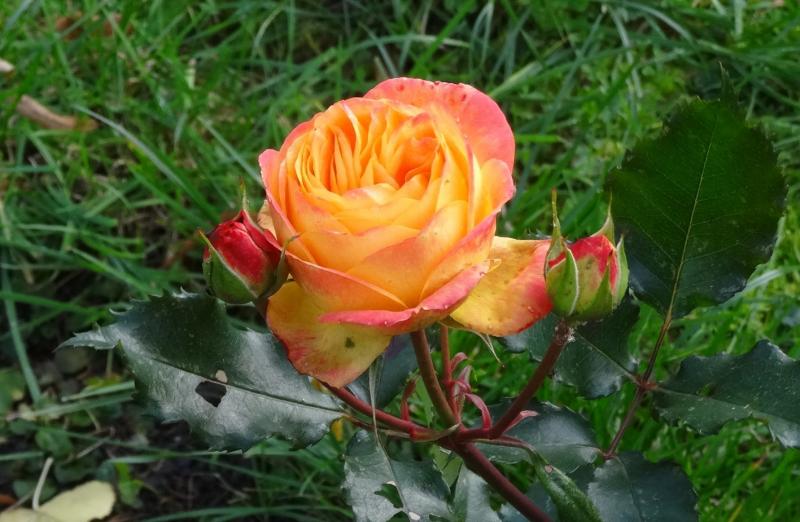 Rose ´Ballerina´mit Liquidambar im Hintergrund.