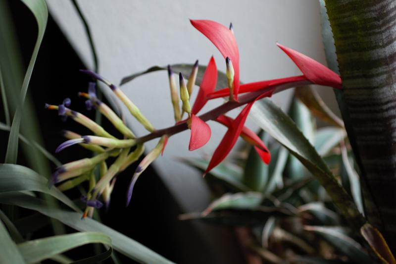 Hier ist die Billbergia Blüte noch mal. So richtig gut konnte ich die aber nicht fotografieren. Ein Eindruck hast du vielleicht trotzdem davon.