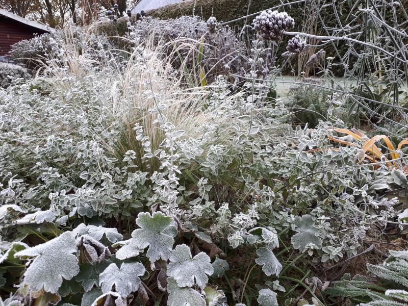 Heute gab es früh morgens zum allerersten Mal Raureif bei vollem Sonnenschein. Ein wunderbares Garten Thema, wie ich finde, und für die Fotografen unter uns sicher ein gefundenes Fressen! Hoffentlich macht Ihr mit und steuert aktuelles aus Euren Gärten bei! :o
