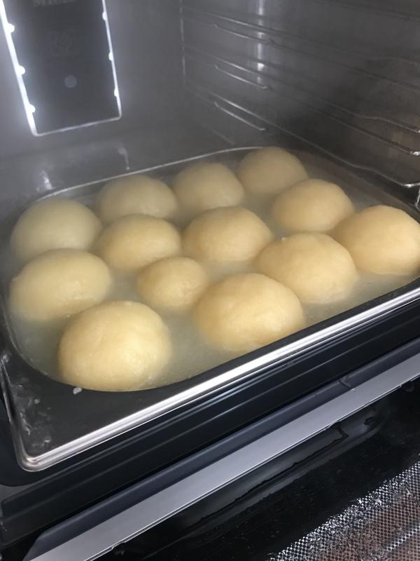 wie schon gesagt die knödel müssen schon schwimmen, das heisst sie steigen auf wenn sie fast fertig sind