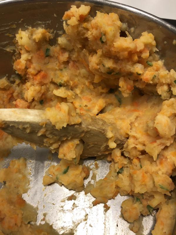 Heute butterzarter Kasseler mit Steckrübenstampf mit Petersilie und Ackersalat aus dem Garten. Leider Foto vergessen, hab ich halt die Reste im Topf fotografiert ;)