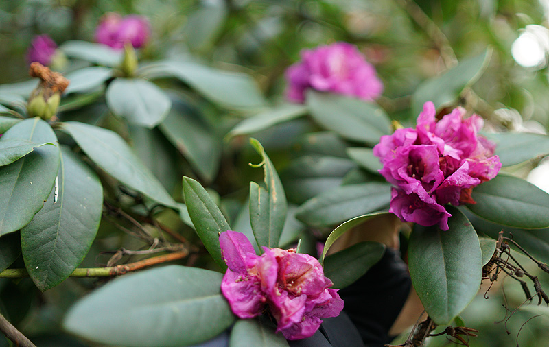 Dieser alte Rhododendron blüht hier nun seit Monaten, sparsamer als sonst, aber eben stetig...