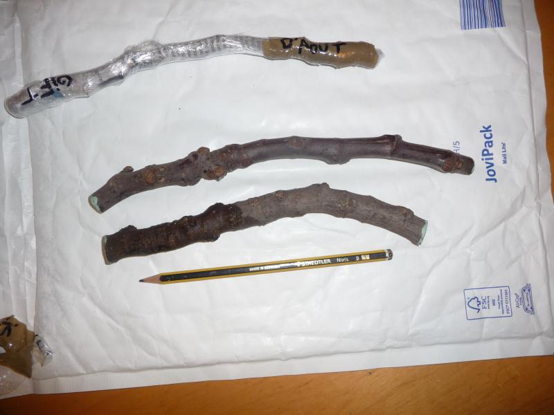 Hier Panachee und Montana nera, die ich bei einem Tausch auf Fruitiers.net bekommen habe (seit ca. Mitte Nov. in den Beuteln).