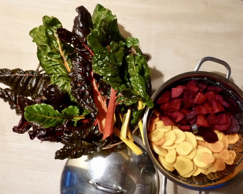 Nüsslisalat, Zuckerhut, Palla rosso und Winterrettiche. Sellerie habe ich alle raus und in den Keller gelegt.