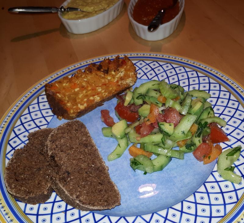 Gestern hat mich meine Freundin bekocht. Es gab Linsenbraten mit selbst gemachtem Brot, Remoulade und Curryketchup,