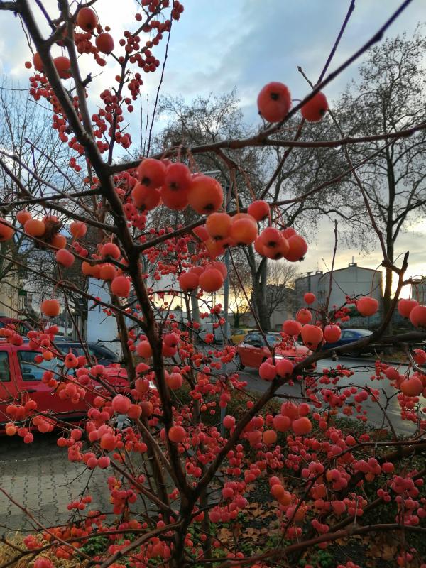 aber einen lasse ich jetzt stehn, der hat purpurne äpfel so groß wie golfball und die hängen noch alle dran, sieht toll aus bei dem vielen schnee