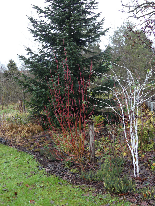 Ein wenig Farbe in die derzeitige Wintertristesse bringen hier derzeit diese Gehölze: Cornus sanguinea 'Anny's Winter Orange', Acer x conspicuum 'Phoenix', Hamamelis x intermedia 'Feuerzauber' und Mahonia x media 'Winter Sun'. Alle sind noch recht jung (die Cornus vor einem, die anderen vor drei Jahren gepflanzt), aber ich bin erfreut, welche Wirkung sie bereits erzielen. ;)