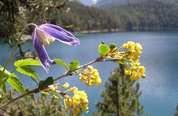 Hi! :)Mein schönstes Clematisfoto gelang mir nicht in meinem garten, sondern in Imst, wo ich am Blinsee eine wilde Clematis alpina entdeckte, die einen Berberitzenstrauch hinaufklettert. Beide waren in voller Blüte.