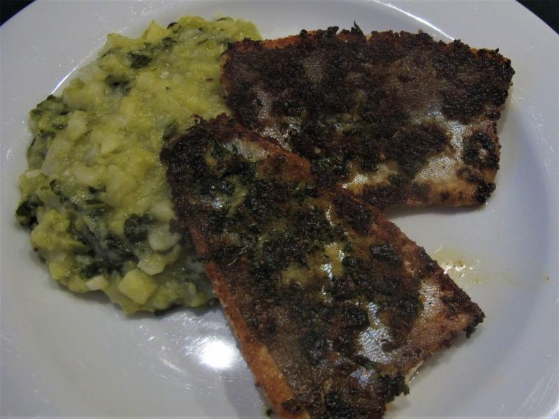 hier gab es wieder mal kohl, diesmal mit saibling in senfpetersilthymianbröslkruste und frischem hellen brot. sehr sehr gut :)