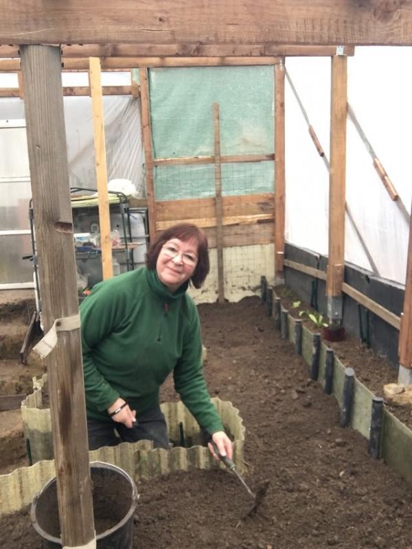 Gestern habe ich bei knapp 5 grad in meinem neuen Erdgewächshaus angefangen die Lehmhochbeete mit Muttererde aufzufüllen,