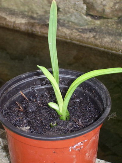 Zunächst jedenfalls beginnen die Blätter zu gilben (was ich jetzt nicht mehr fotographiert habe) und man bekommt ganz schnell das Gefühl, dass man mit seinem grünen Daumen gnadenlos gescheitert ist, aber ist Geduld nicht eine Tugend von uns Hemeromanen? Wer nicht verzagt, der wird belohnt, denn nach einiger Zeit wird ein junges Pflänzchen wieder grün durchtreiben, wie es auch die dormant-Hybriden nach dem Winter tun. So geschehen auch bei mir, hab allerdings vergessen, ein Foto davon zu schießen. Ich liefere es nach, wenn ich das nächste Mal daheim in den Garten komme.
