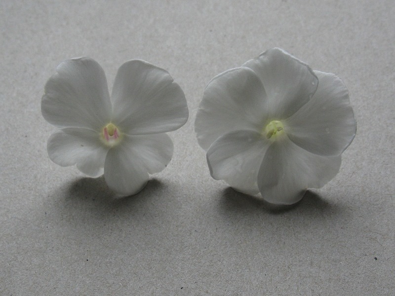 Und die Kronröhre ist bei 'David' leicht behaart und nicht kahl wie bei Phlox amplifolia. Ein Erkennungsmerkmal für den echten 'David' ist übrigens, dass die Blüten nicht reinweiß sind sondern einen prägnanten Fleck im Schlund zeigen.