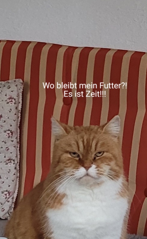 Ich tippe den Mann an:" Sie will Frühstück! Ich schlafe noch..." ;D :P. Mann klemmt sich Streichhölzer zwischen die Lider, schlurft rüber ins Wozi und gibt der Katze Futter.
