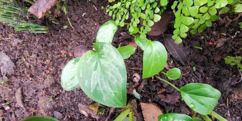 Es war trocken und ich hab' heute mal nach den Arum im Garten an der Seite geschaut.