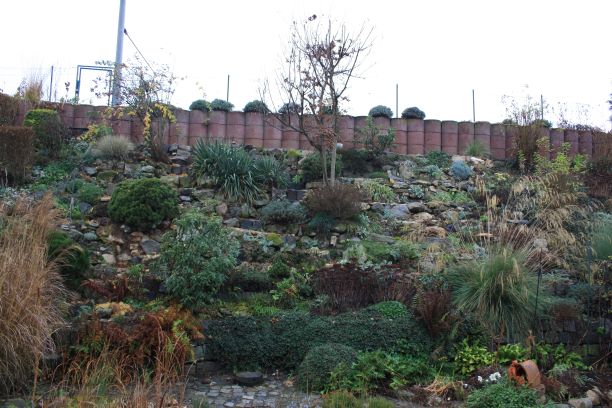 Heute bei Nieselregen und 3 Grad mein Steingarten. Blüten noch Fehlanzeige.